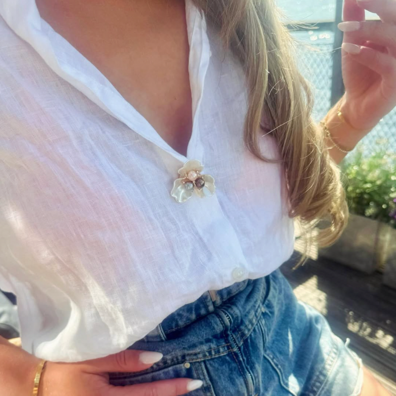 Nos bijoux de bouton sont pensés comme de mini bijoux de créateur pour vos chemises et blouses. Vous les clipsez sur vos boutons existants et, instantanément, votre tenue gagne en élégance, en relief, en personnalité.